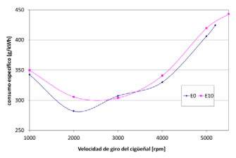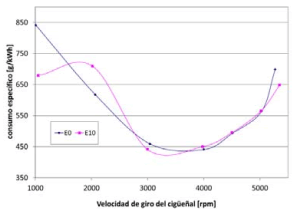 El gasto de combustible se incrementa en un ciclo de combustión urbano cuando se emplea el combustible E10.