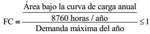 El factor de carga (FC) da la medida de la utilización o aprovechamiento de la capacidad instalada y puede ser calculado por medio de la (ecuación 1).