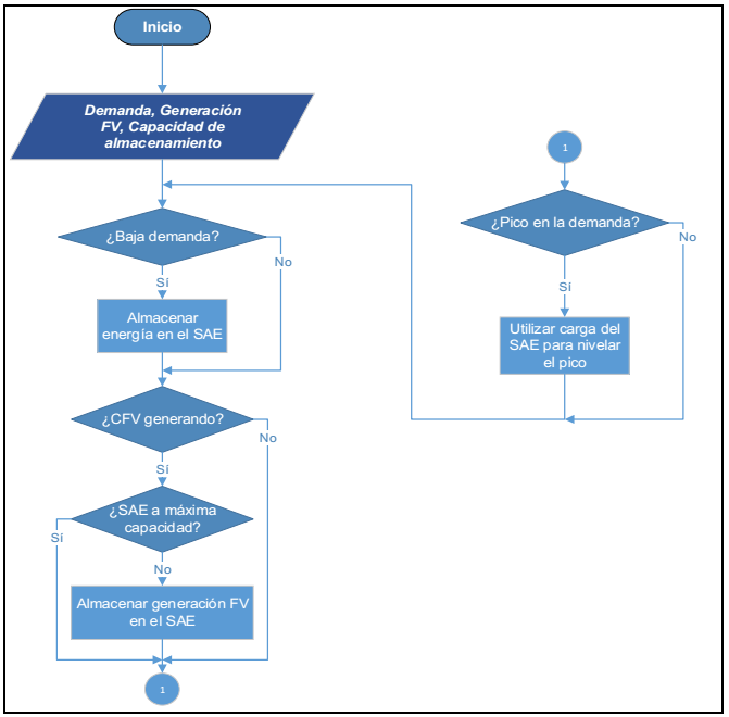 Para analizar el factor de carga (FC) de una curva cronológica de carga diaria (CCCD) se desarrolló un algoritmo en Matlab que calcula el FC bajo diferentes condiciones de trabajo del sistema. El objetivo principal del algoritmo es calcular, evaluar y en el caso que sea posible, mejorar el FC bajo cualquier condición de trabajo de sistema, incluyendo la posible integración de diferentes fuentes renovables de energía, como la eólica o la fotovoltaica. El programa, además, es capaz de acomodar al comportamiento de la carga la generación de una central fotovoltaica o de un parque eólico con la presencia de un sistema de almacenamiento de energía (SAE), con vistas a mejorar el factor de carga anual.