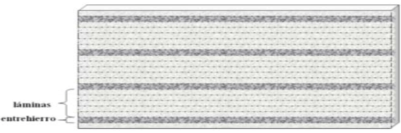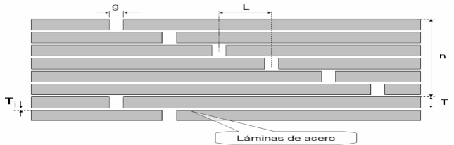 En la vista lateral de estos núcleos, la zona de los entrehierros posee tantas columnas de entrehierros como láminas por paquete se tenga, ver figura 3.