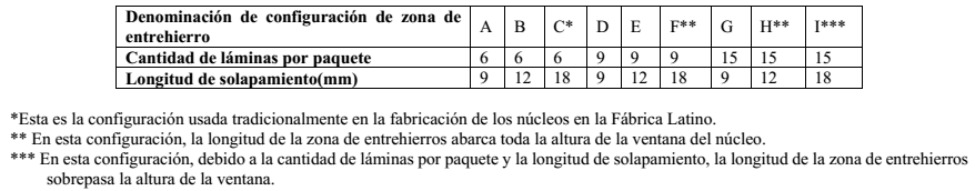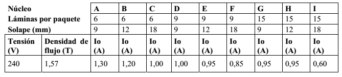 Como se dijo, la configuración C es la usada tradicionalmente en la fabricación de núcleos. Las configuraciones de mejores resultados son las configuraciones I, H y F por ser las de menores valores de pérdidas y corrientes de vacío.