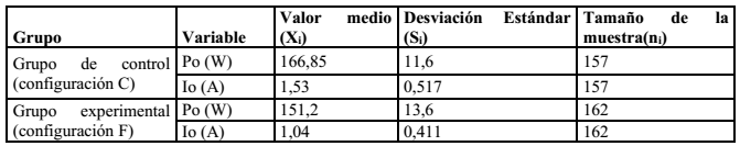 Entonces de acuerdo a la ecuación 1; el tamaño de la muestra para el grupo de control es n1 = 157 y para el experimental es n2 = 162. Se realizaron mediciones de pérdidas y corrientes de vacío al número de muestras determinado según [10], tomándose estas al azar dentro de su población. Los resultados no se muestran por lo extenso. Finalmente se evaluó mediante la prueba“t de Student” si los resultados del grupo experimental son los suficientemente significativos con respecto a los del grupo de control.