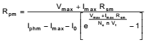 El valor de la resistencia paralelo (Rpm ), se obtiene evaluando en la ecuación (1), obtenida del circuito equivalente del módulo, los valores correspondientes con los datos del fabricante en el punto de máxima potencia (Vmax,Imax ), el que constituye un punto contenido en la característica Volt-Ampere. Después de realizarse la sustitución de los valores del punto de máxima potencia en la ecuación y despejando Rpm , se obtiene la ecuación (13), para su cálculo, quedando expresada en función de los restantes cuatro parámetros del circuito equivalente, Rpm=f(Iphm,I0,n,Rsm).
