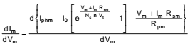 (18)Para el caso particular en que Vm=Vmax e Im=Imax , cuando se cumpla que dIm/dVm= -(Imax/Vmax), se garantiza la pendiente que debe poseer la característica Volt-Ampere del módulo fotovoltaico en el punto de máxima potencia. Para este caso particular dIm/dVm(Vmax,Imax)=f(I0,n,Rsm,Rpm), cuatro de los parámetros del circuito equivalente.