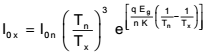 La ecuación (3), permite calcular el valor de I0x, a la temperatura Tx, sin embargo hay referencias que difieren en la expresión de cálculo. La ecuación (20), se obtiene a partir del circuito equivalente del modelo, mediante la aplicación del teorema de Tellegen[20-22]. El valor se obtiene considerando el circuito equivalente del modelo bajo la condición nominal de circuito abierto y el propio circuito considerando la variación de la fotocorriente con la temperatura y la irradiancia y la tensión de circuito abierto con la temperatura, expresadas por las correspondientes ecuaciones (2) y (4). En la ecuación obtenida, la n y la x en los subíndices expresan el valor de las variables a la temperatura nominal y la de operación del módulo respectivamente.