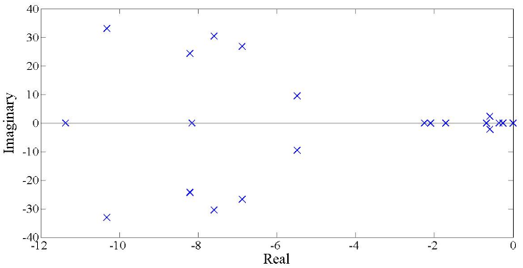 Each eigenvalue represents a system mode and the relationship between this mode and the stability is given by Lyapunov [15], where the system is stable when ; the system is unstable when; and in general, no conclusions arise when