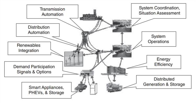 En dependencia de la visión que tenga el especialista de la red eléctrica, así estará conformado su criterio de definición sobre la red inteligente o al menos, el peso del área de importancia que esta le brinda [10]. Algunas de estas definiciones incompletas o áreas de mayor peso son que la red inteligente es: la automatización de la distribución, la generación distribuida, la automatización de las subestaciones, la infraestructura avanzada de medición con medidores de energía, etc. Todos estos criterios mencionados anteriormente son parcialmente verdaderos [11]. La definición más completa es una red con inteligencia capaz de integrar las diferentes tecnologías avanzadas de medición, métodos de control y comunicaciones dentro de la red eléctrica y que presenta las siguientes características: