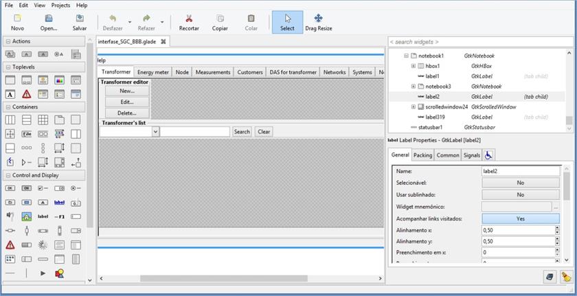 Las ventanas gráficas de la aplicación fueron implementadas mediante un conjunto de bibliotecas multiplataforma desarrolladas para la creación de interfaces gráficas de usuario (GUI). El conjunto GTK+ es de excelentes prestaciones y facilita el diseño mediante la herramienta GLADE, que permite diseñar las interfaces de forma gráfica e independiente del lenguaje de programación. Vea la figura 5.