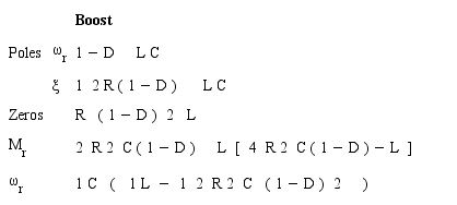 The transfer functions equations (8) and equations (9), are stable and show that the poles depend on the condition of the average duty cycle U. Further, equations (8) and equations (9), show a damped response (complex poles) on condition 4R2(1-U)2C-L>0. In addition, we have equations (8), is non-minimum phase because it has an unstable zero (see table 1), which will limit the performance of the control system. The dynamic characteristics of the function G1(s) transfer are shown in table 1.