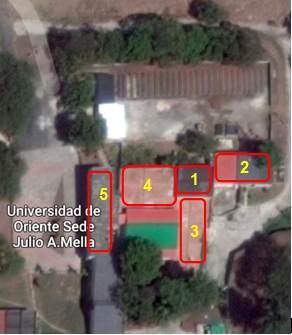 Para identificar las zonas se utiliza una vista aérea del CNEA, que permitió identificar cinco posibles escenarios, los cuales se muestran en la figura 3.
