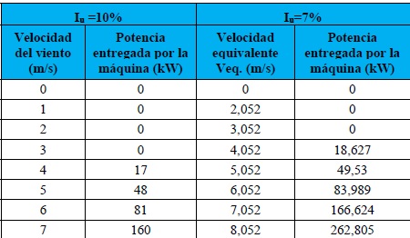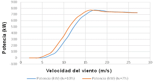 Usualmente, para la obtención de la curva de potencia de las turbinas eólicas, los fabricantes emplean un índice de turbulencia de 10%.