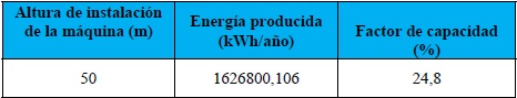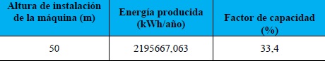 Como se observa en las tablas 3 y 4, la producción de energía de la turbina eólica se incrementa en un 34,7%. Esto se debe a las condiciones del viento favorables en el sitio de estudio al tener un índice de turbulencia bajo (sólo 7%), incrementándose la entrega de potencia por parte de la máquina y por ende, un incremento en el factor de capacidad, el cual se considera bueno a partir del 20%.