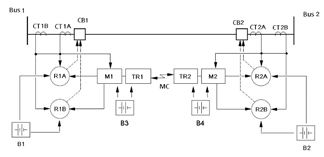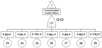These modifications allow showing the PSA model capacity to analyze complex systems, considering redundancies, dependencies and common-cause failures. The system components of figure 1, are identified by the following codes: CT - current transformer, CB - circuit breaker, R - relay, B - DC power system, M - Tone equipment, TR - Microwave transceiver, MC - Microwave channel.
