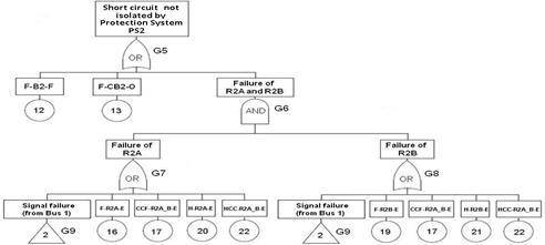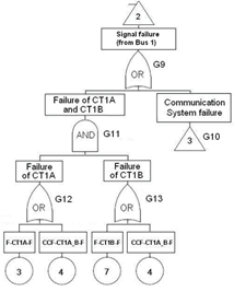 The gates and basic events are numerated consecutively. The basic events are also identified by codes, appearing in the rectangles above the numbers. The first characters of the codes are F (failure), H (human error), CCF (common-cause failure) and HCC (common-cause human error). The last character of the codes indicates the failure mode: F (fail to function), O (fail to open) and E (fail to close). It is important to remark that the failures of the communication system (tone equipments, microwave transceivers and microwave channel) appear only in the fault tree of the Protection System PS2. On the other hand, the failures of the current transformers CT1A and CT1B contribute to the failure of both systems PS1 and PS2, while the failures of the current transformers CT2A and CT2B are irrelevant and do not appear in any of the FTs.