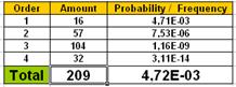 The second step is the quantitative probabilistic evaluation of the MCSs to estimate the overall risk and the significant MCSs, as well as the basic events importance measures: Fussell-Vesely, Risk Reduction Worth (RRW) and Risk Achievement Worth (RAW). CSolv+ makes this evaluation in the Rare Event Approximation, as the sum of the MCSs probabilities, multiplied by the corresponding IE frequency.