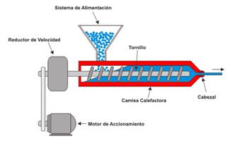 La extrusión es un proceso continuo, en el que la resina es fundida, por la acción de la temperatura y la fricción y forzada a pasar por un dado, que le proporciona una forma definida y es enfriada finalmente, para evitar deformaciones permanentes. Se fabrican por este proceso: tubos, perfiles, películas, manguera, láminas, filamentos, pellets y otros. En este proceso, juegan un papel importante las propiedades termofísicas de la materia prima utilizada, estas contribuyen a tener un mejor o peor desempeño energético y productivo, sobre todo, en la etapa de enfriamiento que se desarrolla, una vez salida la materia prima del dado, que le proporciona la forma a la salida del extrusor y pasa a la etapa de terminación del producto.