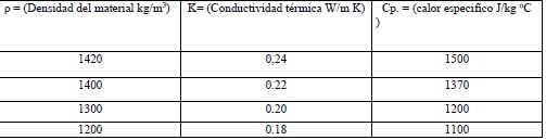 Cualquiera que sea el tipo de enfriamiento, el comportamiento de las propiedades termofísicas tienen efecto similar, por un lado, por relacionarse directamente con la densidad, determina el flujo másico del equipo, por el otro caso, determina el tiempo de enfriamiento necesario para un producto de calidad [4-6]. Estos efectos evidentemente influyen en el desempeño energético y productivo de este proceso.El (poli cloruro de vinilo), PVC como materia prima generalmente presenta las siguientes características técnica. Vea la tabla 1.