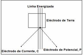 Para evitar esta interferência, se deve realizar a medição em uma direção perpendicular à linha energizada, incluso pode-se medir abrindo os eletrodos de corrente e potencial aproximadamente 90°, como é ilustrado na figura 10.