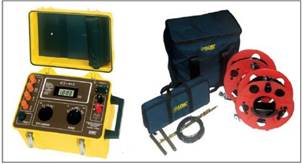 Teste de resistividade da terra (medida de quatro- pontos), geralmente levado a cabo por companhias eléctricas em cidades de construção proposta. Análise usando de resistividade da terra, o tamanho e a complexidade da construção do sistema de toma de terra. O Medidor de Resistência de terra modelo 4500 medirão a resistividade de compostos epóxidos, cimento, materiais de melhoria da terra e muitas outras substâncias.
