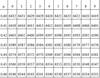 Para o valor de chado, aparece um valor de PT/C, mostrado na tabela 1, os valores que se apresentam de PT/C, devem ser divididos por 1000 (por exemplo para um valor de µ=0,401 se tem um valor de PT/C = 0,6431).