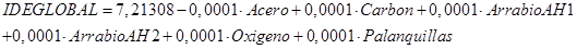 En forma análoga, los factores significativos sobre el índice Global de procesos (IDE GLOBAL) son: producción de acero, carbón, arrabio en altos horno N° 1 y 2, producción de oxígeno y palanquillas.