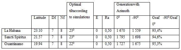 Although it is true that, with the reduction of latitude, the relative difference in generation seems to decrease, under real conditions, with the North-South orientation energy is maximized in all three cases. Hence, an azimuth of 00 will be taken as a reference for the realization of our experiment.