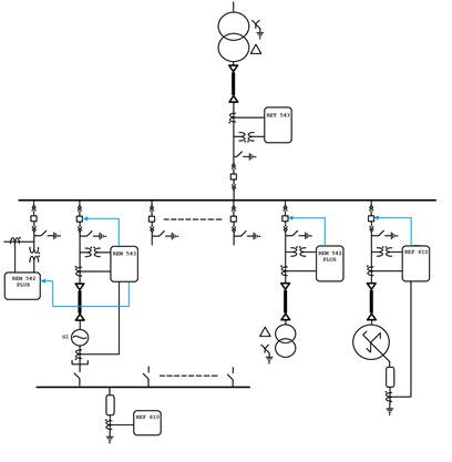 En estos esquemas eléctricos se aplica un relé de protección de tecnología ABB para todos los transformadores y los generadores eléctricos, así como paneles de control, medición y protección con elevada seguridad para los operadores. Los dispositivos de protecciones eléctricas secundarios se dividen en varios esquemas individuales e instalados específicamente en los equipos (figura 2), los cuales se enumerarán: