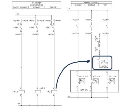 Esta interconexión es considerada una protección de barra mecánica muy importante para cuidar a las zonas de los gabinetes de cortocircuitos internos de alta intensidad. El ITH limiter es un dispositivo de acción mecánica que se instala en la parte superior de los gabinetes que actuará bajo la presión de la expansión del arco eléctrico interno. Este esquema es introducido en el relé REM 543 por una entrada binaria para combinarla con el arranque de un elemento de sobre corriente y adicionar un poco de seguridad.