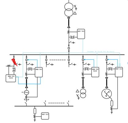 Los diodos conectados a la salida del esquema de blackout de barras, evita errores por inyección de señales provenientes de los circuitos de control de los diferentes interruptores y que pudieran hacer una limpieza de la barra por error. Con este esquema instalado si se dispara el relé REF 610 y desconecta el Grounding Bank se desconectarán todos los interruptores de la barra y se limpiará la falla que debería ser una falla en barra de fase a tierra o una avería en el propio transformador de aterrizamiento.