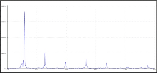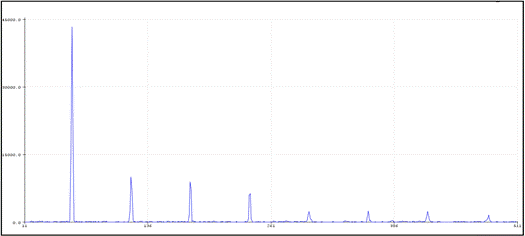 Figure 11, shows the result of the FFT executed by Arduino Due. It was used 1024 samples of the captured signal. Figure 12, shows the normalized FFT data, where the insignificant distortion values for the calculation of the inverse FFT were disregarded.