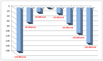 Los resultados demuestran que la inclinación idónea de los paneles fotovoltaicos para la provincia corresponde con los 22º y aunque las cifras por si solas pueden parecer insignificantes, cuando se tiene en cuenta la potencia instalada y se calculan al tiempo de vida útil a la que están diseñados estos sistemas, pueden traducirse en perdida económicas de consideración.