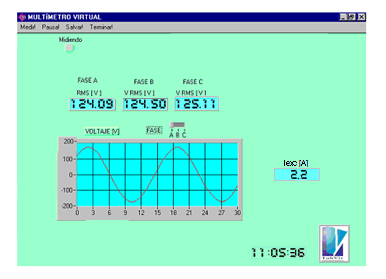 K:Cantidad de mediciones que se toman.V:Tensión instantánea en cada medición (K).I:Corriente instantánea en cada medición (K).A:Relación de transformación del transformador de tensión.Las mediciones por software, se realizan con ayuda de paneles. Una muestra de ellos se representan a continuación: Ver figura 2.