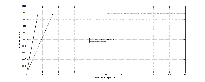 Los resultados obtenidos para los diferentes escenarios se muestran a continuación. La primera respuesta que aparece es la de la velocidad de referencia y la velocidad real. Seguidamente la corriente de fase y, finalmente el torque del motor y el de la carga.