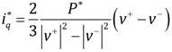 (15)La corriente reactiva al igual que el caso anterior también es proporcional al vector de voltaje en cuadratura, solo que esta se vez con el de secuencia positiva v+_1, como puede observarse en la ecuación (16):