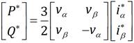 Siendo P y Q las potencia total instantánea activa y reactiva respectivamente y vαβ, iαβ los valores de la tensión y la corriente en el sistema referencial estacionario α-β.