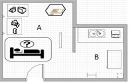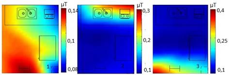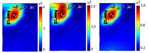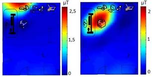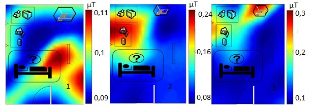 En el cubículo B no hay presencia de equipamiento médico, aunque hay síntomas de contaminación, a medida que se conectan los equipos eléctricos (refrigerador y hornilla eléctrica) que se encuentran en él debido al carácter aditivo del campo magnético.