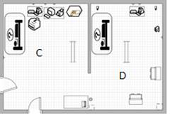 Como primer resultado se obtuvieron los planos de los locales a medir. El área de Neurofisiología objeto de estudio está dividida en dos locales; situados uno encima del otro, teniendo acceso externo. El local de la planta alta es el de potenciales visuales (figura 3) y el de la planta baja el de potenciales auditivos (figura 4). Para las mediciones los nombraremos cubículos A, B, C y D como se observa en las figuras 3 y 4.