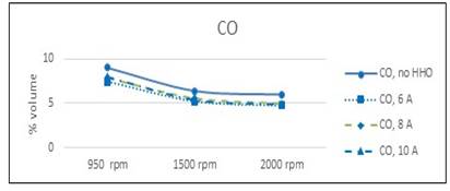 Emissions of CO and unburned HC is lower when HHO participates in combustion, ought to its greater flammability and minor ignition energy.
