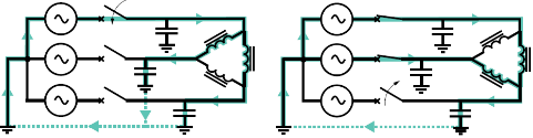 Se presenta en circuitos con transformadores trifásicos o bancos de transformadores, cuando la energización o desenergización del transformador se realiza en forma secuencial, cerrando o abriendo una por una sus líneas utilizando dispositivos de interrupción monopolares o por la operación de protecciones como fusibles y preferentemente si el devanado primario no se encuentra puesto atierra y la fuente del sistema lo está sólidamente. En estos casos, las capacitancias a tierra de las líneas abiertas quedan conectadas en serie con la reactancia inductiva de magnetización del transformador y actúan como un cortocircuito, creándose las condiciones para la ferrorresonancia [1, 4-7]. La figura 3, muestra uno de sus ejemplos.