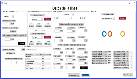 La interfaz que a continuación se muestra permite introducir los datos de la línea para calcular sus parámetros de secuencia cero, vea figura 7.