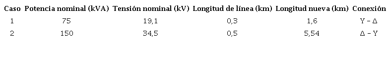 Para contrastar los resultados obtenidos, se realizará el mismo análisis de los casos presentados, cambiando solo la longitud de la línea. La nueva condición, se muestra en la tabla 3.