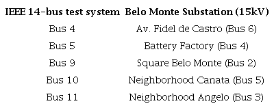 First, the bus generation was adapted to make the system capable of meeting the demand demanded by the loads that will be introduced. In all, five loads originating from the distribution network were inserted in Luanda, the capital of Angola, from the Belo Monte Substation (15kV). The new loads were introduced in buses specific to the original system, replacing the existing loads. The location and nomenclature of each load are shown in table 1.