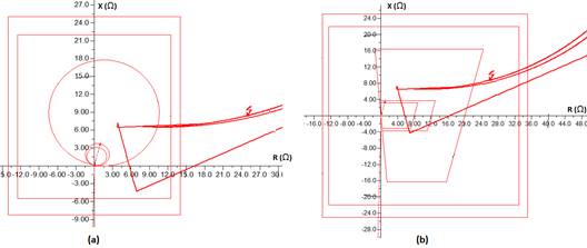 En la figura 5, se puede observar esta solución para algunos de los relés de las tecnologías mencionadas [9, 11, 12], mayormente la utiliza Siemens y los relés Micom de la serie P44x. Es importante destacar que las zonas cuadrilaterales son las que encuentran mayor aplicación en las líneas de transmisión debido a la existencia de cortocircuitos con resistencias de falla [16, 17], en este tipo de aplicación las oscilaciones de potencia impactan más las zonas de protección (figura 5).