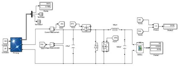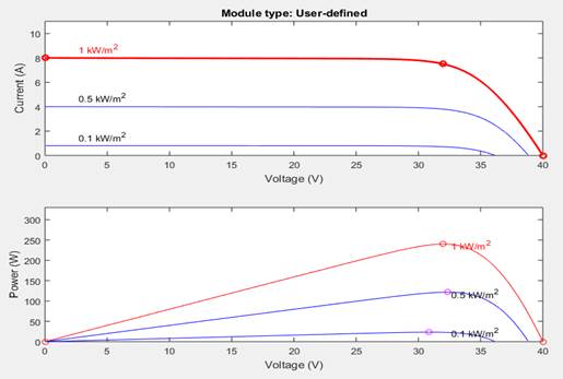 A continuación, se presentan los resultados obtenidos en la modelación y simulación del regulador de carga y la etapa inversora en el software MATLAB. Disponer de esta herramienta posibilita evaluar el comportamiento del sistema ante variaciones de la carga y para diferentes condiciones de trabajo de los paneles solares y las baterías. Se han utilizado los valores de resistencia del canal en conducción de los MOSFET (RDS(ON)) y de caída de tensión en sentido directo de los diodos (VF) declarados por el fabricante de las componentes.Los resultados obtenidos de la simulación del modelo del regulador de carga ante diferentes valores de irradiancia, en correspondencia con los datos reales del panel, demuestran lo significativo del uso de un algoritmo MPPT en lo que a eficiencia se refiere. En la figura 9 y la figura 10, se observan los valores de potencia entregada por el panel, los cuales coinciden con el punto de máxima potencia para cada condición (ver figura 11).