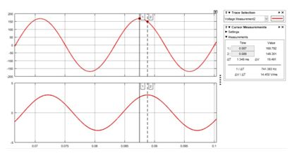 Los resultados de la simulación de la etapa inversora con carga resistiva inductiva (R-L) permiten asegurar que no existe gran distorsión de armónicos en la tensión y corriente para dicho tipo de carga. (Ver figura 15).
