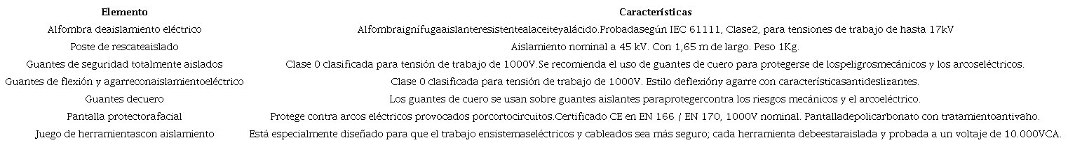Si bien en las tablas anteriores quedaron evidenciadas todas las pruebas necesarias a ejecutar, así como el equipamiento requerido para su ejecución, es importante también tener en cuenta los medios de seguridad que hacen falta para el correcto funcionamiento del laboratorio, lo cual se presenta en la tabla 3.