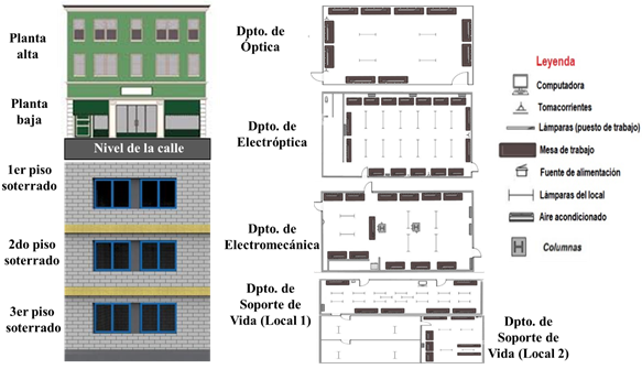 Esta investigación se realizó en el Centro de Electromedicina Provincial de La Habana. Este posee una estructura vertical con dos pisos sobre el nivel de la calle y tres por debajo (soterrado), como se muestra en la figura 1.