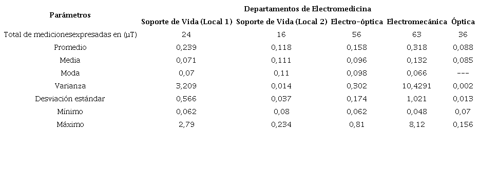 ABSTRACT: According to reports from the World Health Organization, electromagnetic fields are the cause of health effects. It is for this reason that strict control must be maintained over radiation without ion emission from equipment in medical equipment repair and maintenance workshops due to the large accumulation of these, which operate with electrical energy and emanate low-frequency electromagnetic radiation.This action should be carried out especially in countries where there are no regulations on this subject. In this work, the Provincial Center of Electromedicine was selected, where it was carried out, in five places of interest, for five consecutive days, using a gaussmeter. Averages are calculated to represent the ambient magnetic field using color maps. The results obtained and the annual electromagnetic exposure did not exceed those recommended by the International Commission on Non-Ionizing Radiation Protection.