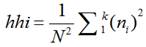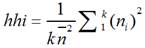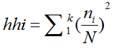 In this case, the fewer the classes, the bigger the percentage added to the “hhi” index. Thus, why such percentages should be added to an index arises. If all numbers of the samples are in one class, then