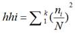 In this case, the fewer the classes, the bigger the percentage added to the “hhi” index. Thus, why such percentages should be added to an index arises. If all numbers of the samples are in one class, then